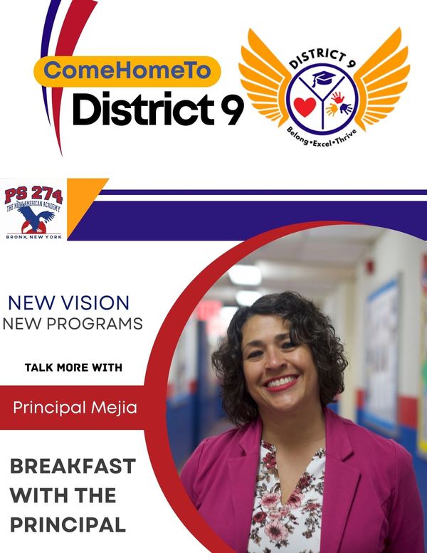 Principal Mejia hosts monthly breakfast workshops and leads weekly Zumba classes to help students and families feel more comfortable. We hope to see you in our May and June Events.